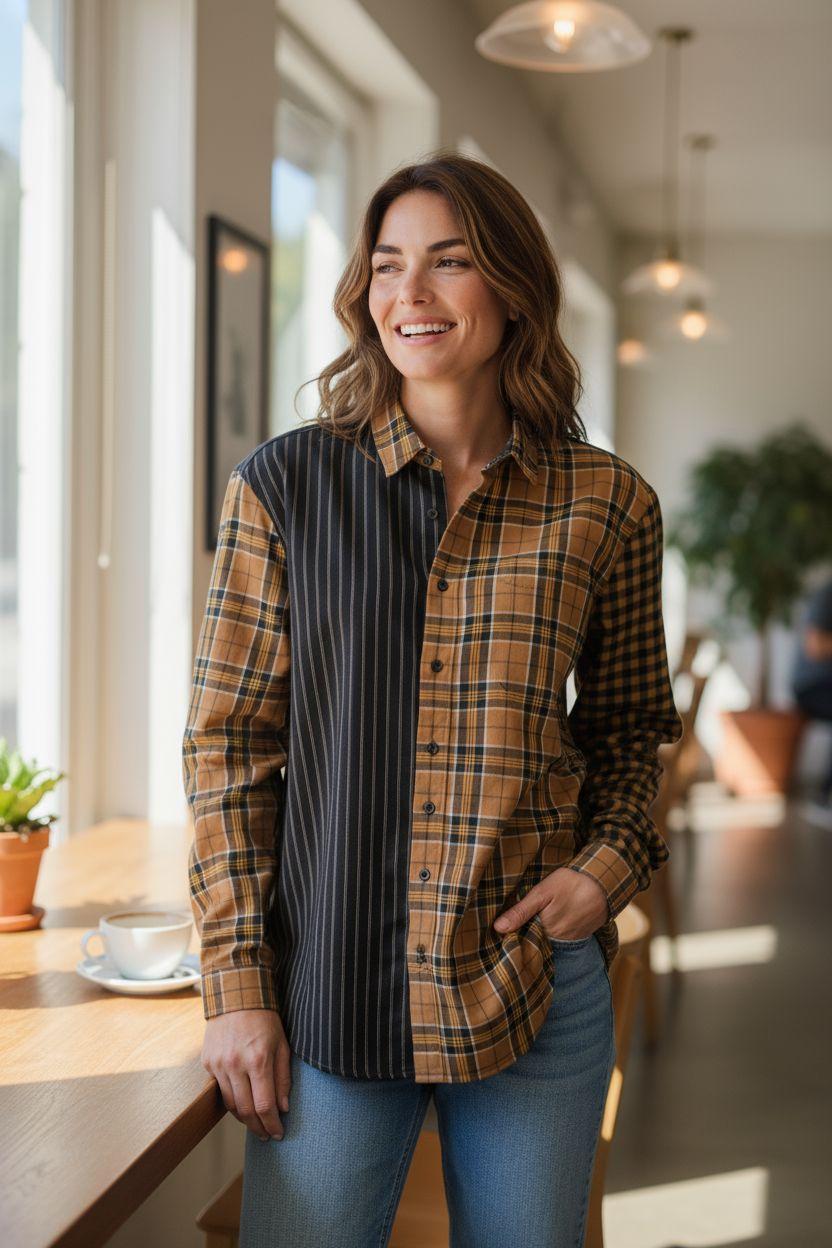 شميز شتوي قطيفه مضلع SHEIN